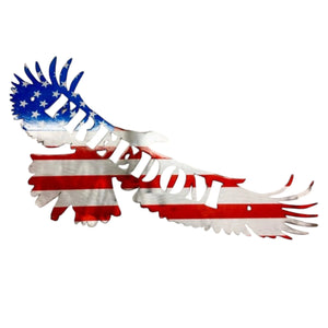 Show your pride in the red, white, and blue with this USA Eagle Metal Sign, crafted in the shape of a soaring eagle with a full-color American flag background. For a personalized touch, add a custom word cutout across the eagle’s wingspan — perfect for your family name, favorite phrase, or a meaningful message.