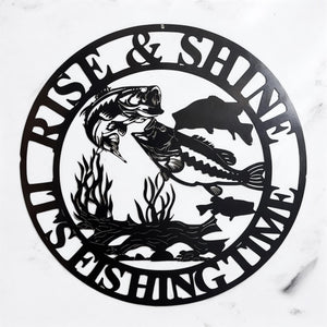 Start every day with a reminder of what really matters — fishing! This “Rise and Shine, It’s Fishing Time” metal sign is the perfect addition to any lake house, cabin, garage, or man cave. Cut from durable 16-gauge American steel and finished in sleek black powder coat, it brings rustic charm and outdoor spirit to any space.